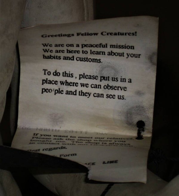 Rare statue of an alien with the size of one meter high, the statue is marked below his feed,